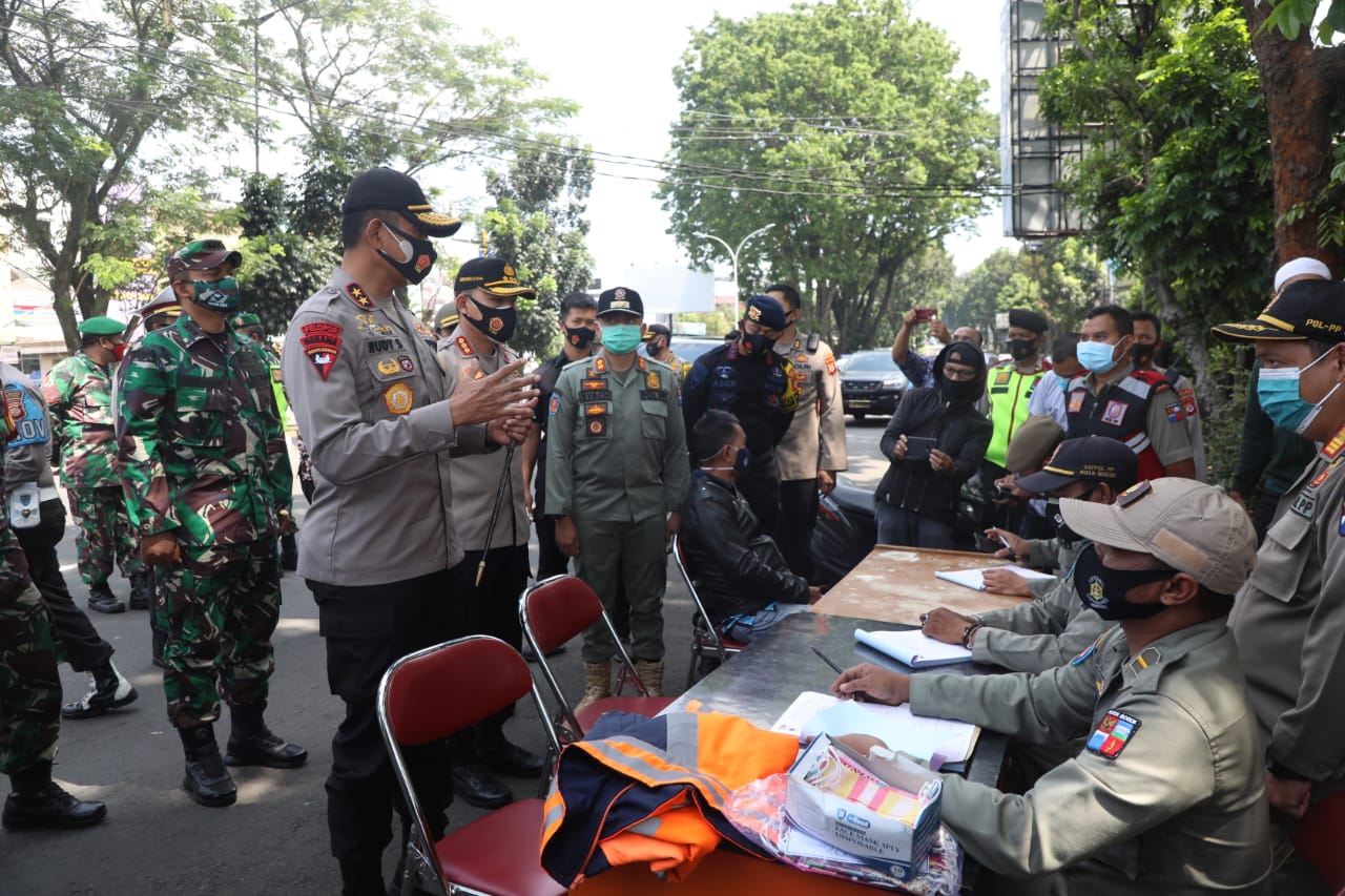 Kapolda Jabar Irjen Pol Drs Rudy Sufahriadi bersama PJU Polda Jabar melakukan sidak ke wilayah polres jajaran, khususnya di Kota Bogor, Jumat (25/09/2030). Sidak dilakukan terhadap operasi yustisi gabungan TNI-POLRI yang membeckup pemda kota bogor dalam rangka penegakan ketertiban dan kedisiplinan masyarakat kota bogor dalam mematuhi protokol kesehatan. Didampingi Kapolresta Bogor Kota, Dandim 0606, jajaran Pemkot Bogor, Kapolda Jabar yang datang bersama PJU Polda Jabar memeriksa langsung pada saat petugas gabungan melakukan penindakan terhadap masyarakat yang melanggar terutama yang tidak menggunakan masker di seputaran balai binarum, tepatnya di Jl. Pajajaran, Kecamatan Bogor Timur, tempat pertama kali yang dikunjungi dalam sidak kali ini. Selengkapnya...
