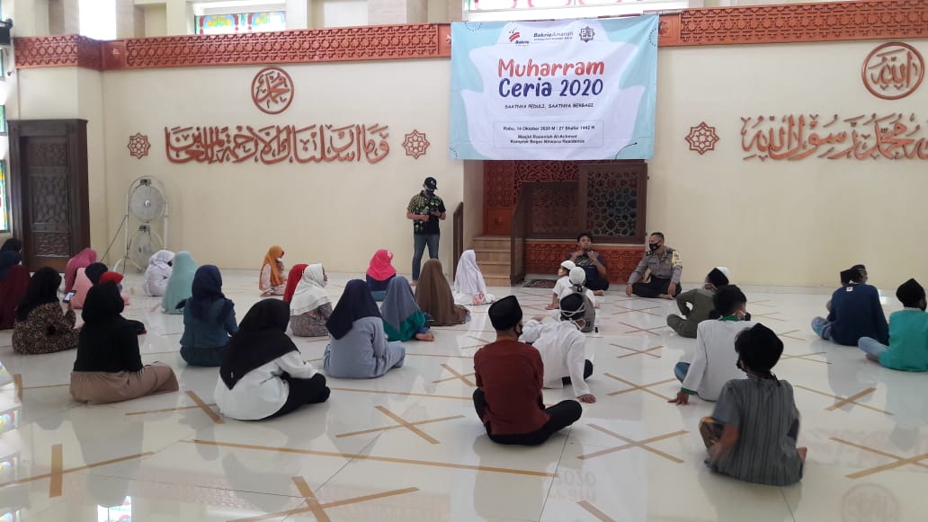 Dimasa pandemi seperti sekarang, protokoler kesehatan diterapkan oleh puluhan anak yatim dan piatu dengan menggunakan masker dan jaga jarak saat mengikuti santunan dari Bakri Amanah, Rabu (14/10/2020). Selengkapnya...